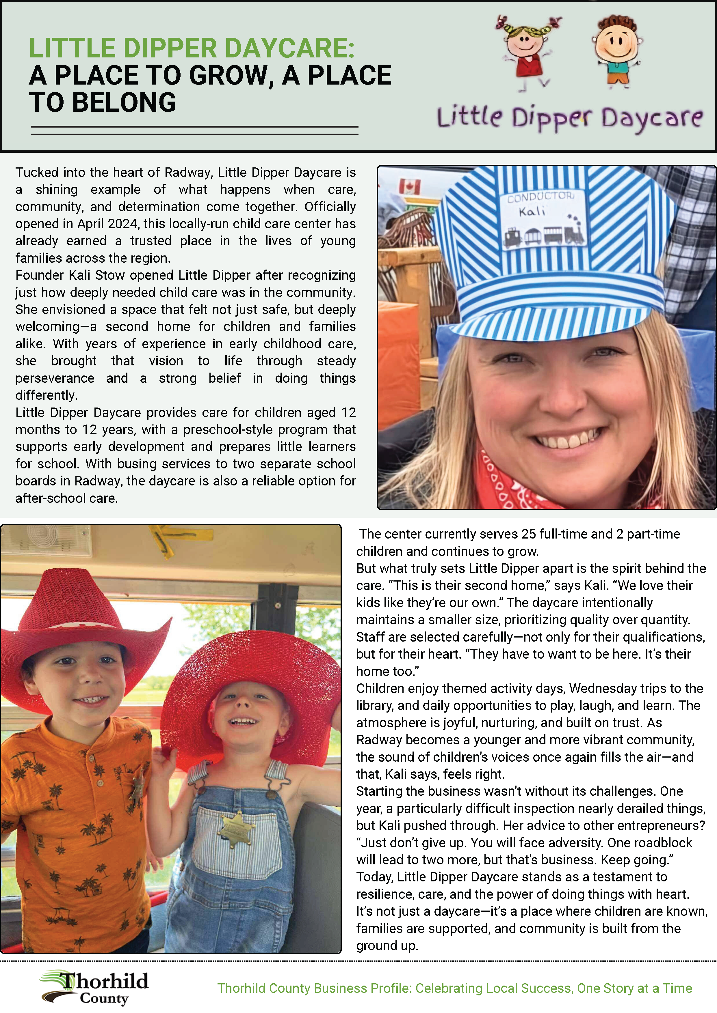 Each month, we highlight local business stories, share key insights, and connect you with the people shaping our economy. Scroll below to see how businesses in Thorhild County are making an impact.